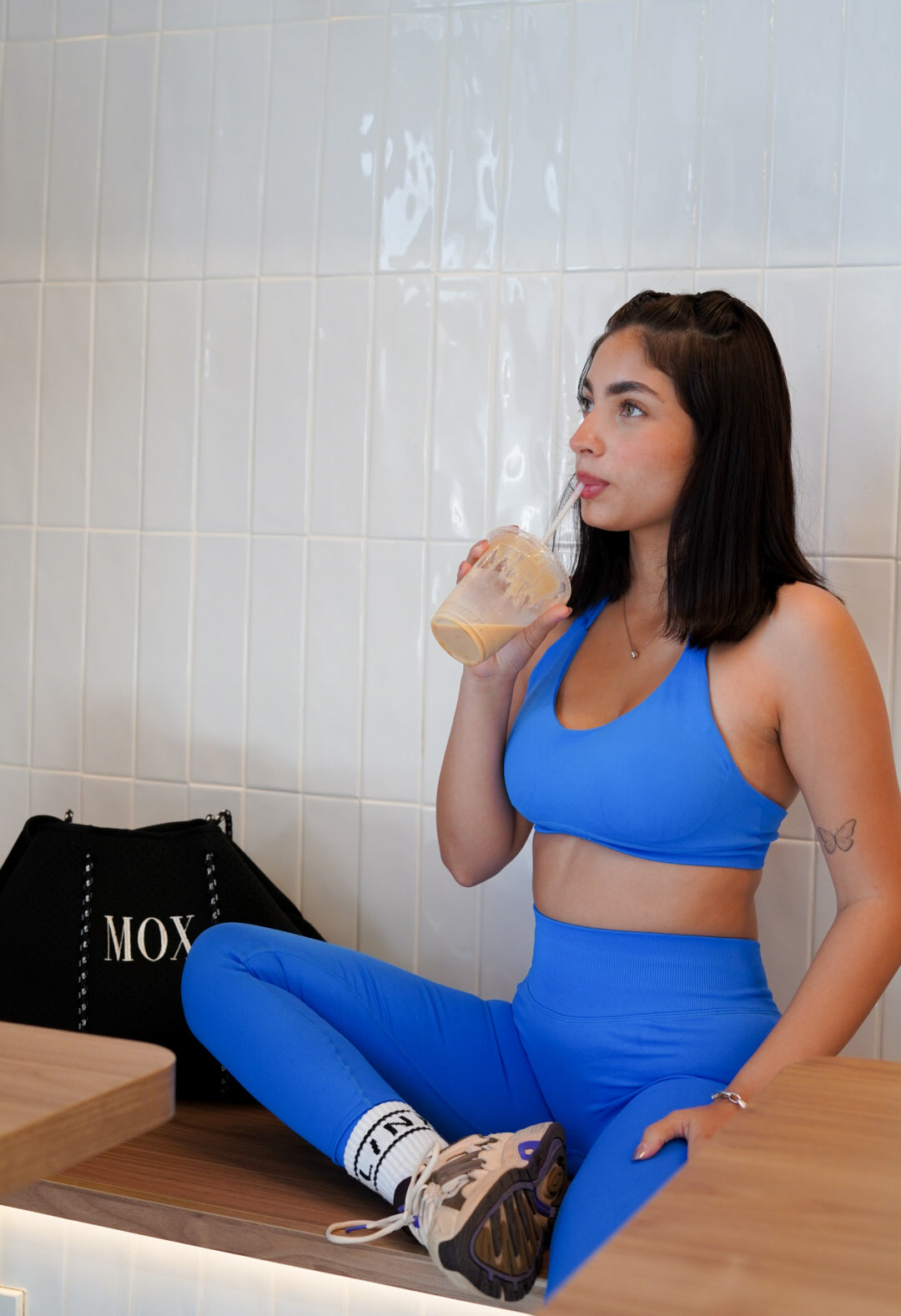 The Juliette Set offers a seamless design for ultimate comfort, along with a halter neck strap and open back for a stylish look. With medium support and a firm, true-to-size fit, it also features a low ribbed band and subtle glute contour. Plus, the squat-proof construction and scrunch bum seam add extra confidence to your workout.